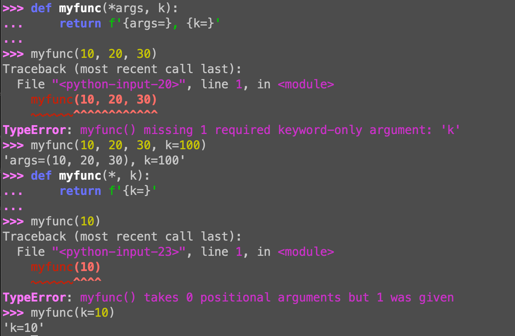 def myfunc(*, k):